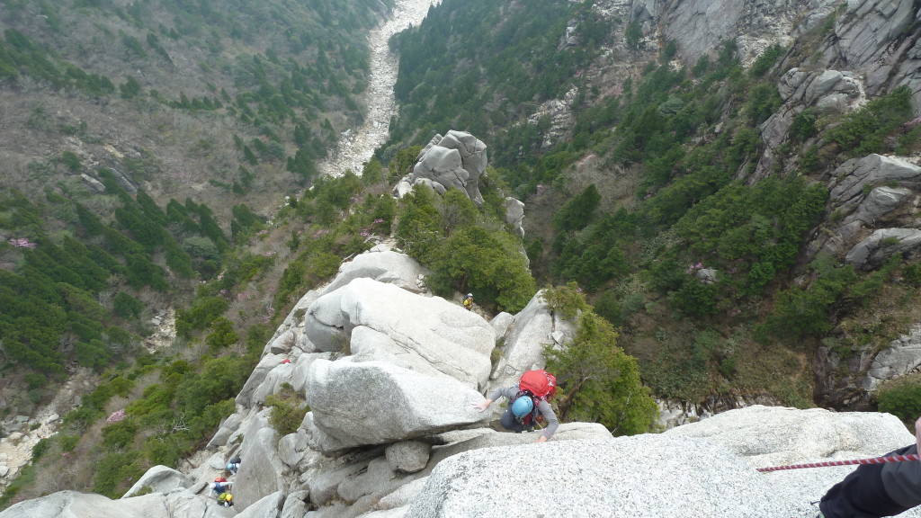 快晴の中、高度感満点の御在所岳・前尾根のクライミングを