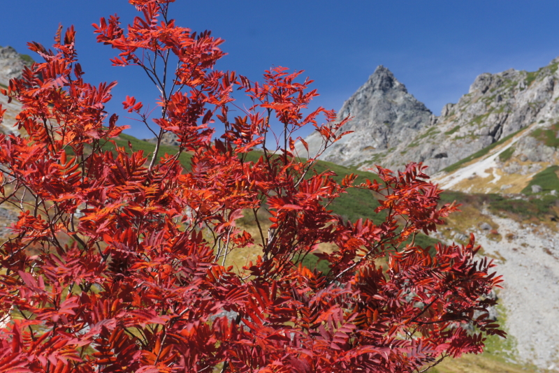 槍沢も槍を遠景にしたナナカマドがとても綺麗で画になります。