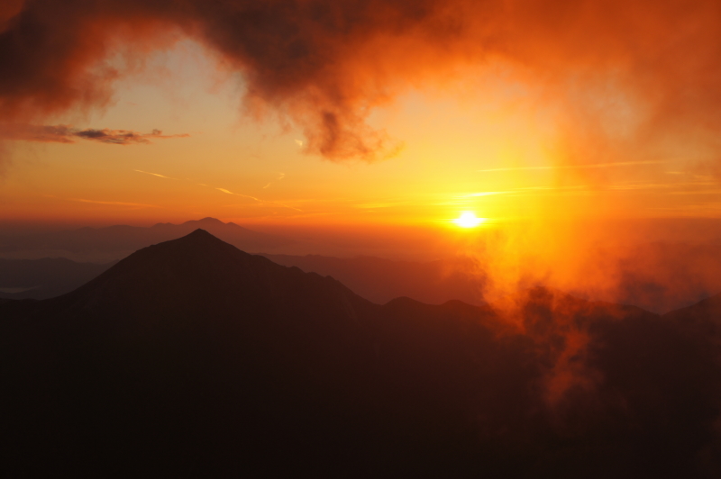 夕焼けの北穂