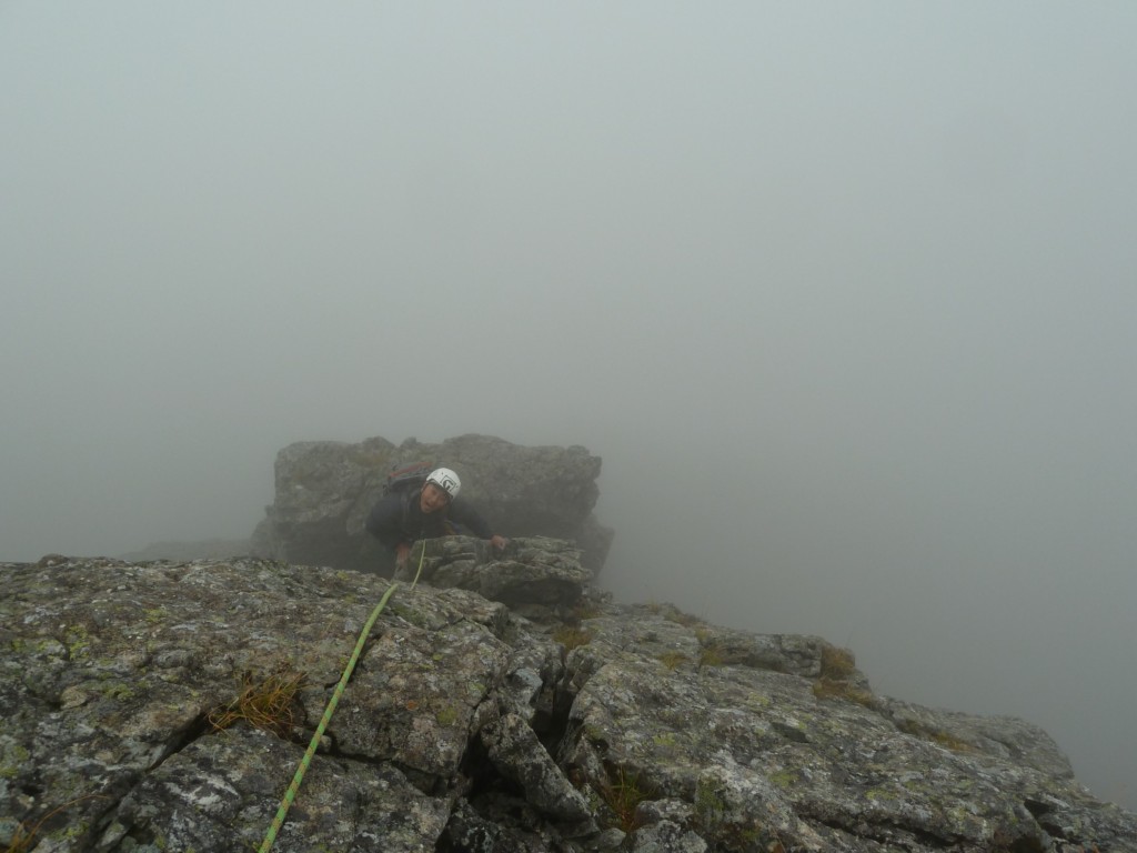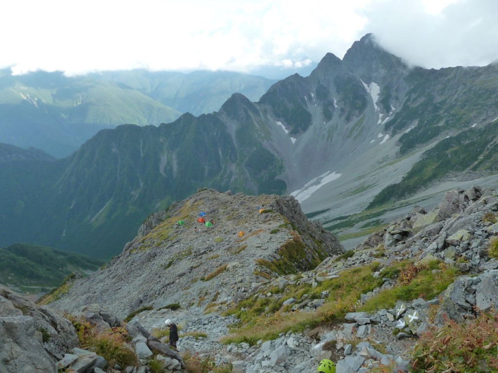 20170910_滝谷ドーム中央稜山行 投稿者: 過去文書2017/09/122020/05/07活動報告 20170910,11で滝谷ドーム中央稜をT村さん、K田君、F田で登って来ました。 初日に北穂まで上がりテント設営後、取付き点を確認し北穂の小屋でコーラで乾杯! 二日目にドーム中央稜登攀後、涸沢でカレーライス、徳沢でソフトクリームを食べて上高地まで下山のギュッと詰まった内容の山行でした。 今年は天候が安定しないので大変ですが、今回も何とかなって良かったです! 初日の涸沢は最高の景色!滝谷はガスガス!取付きを捜索中。北穂のテン場がBC1Pリード中のF田・・・ザイルの先に居るはずです!1Pの核心を超えたT村さん2PをリードするK田君・・・かすかに見えます!4Pリード中のT村さん・・・上部に白いヘルメットが見えます?