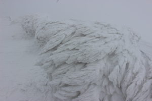 しかし標高1300m位の斜度がある辺りから風が強くなり始め、足元のシュカブラはバリバリのエビのしっぽならぬ巨大マイタケの様になり、ガスって視界は悪くなり、頂上付近は初めて体感する程の暴風でした。