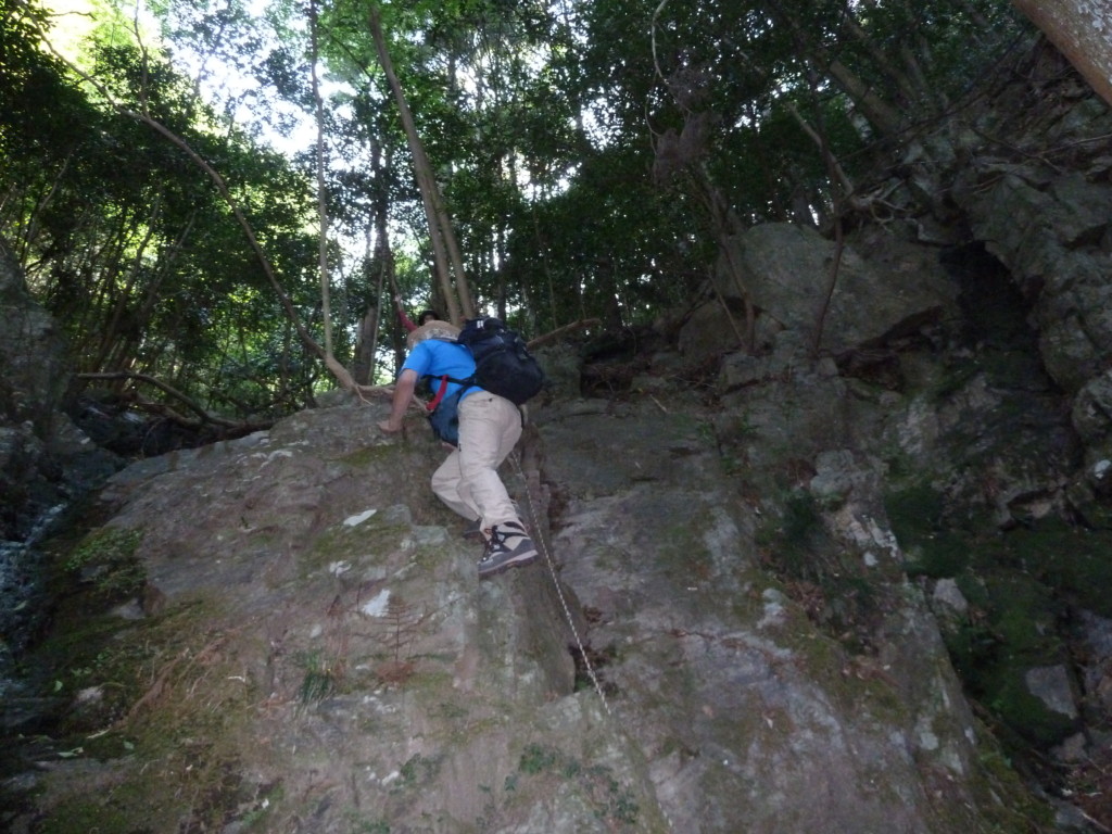 荒沢右俣は、ガレ場の急登で足場がすごく悪い。 何ヶ所かロープの設置された箇所も岩が濡れてヌメヌメしていてとても歩きづらかった。