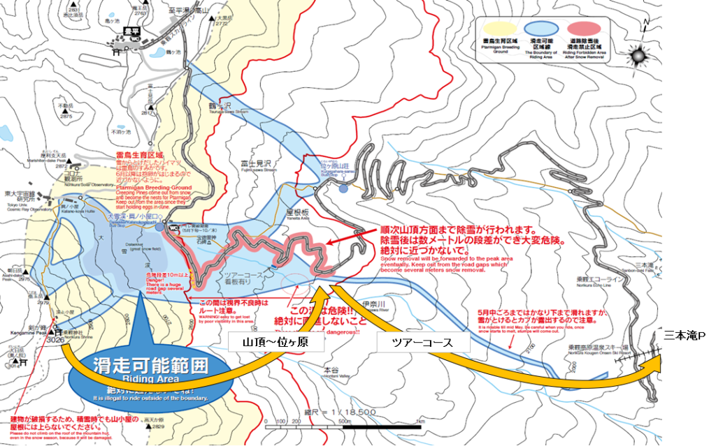 スに乗らず、三本滝まで滑走/歩行した。当日は終日天気が良く、ツアーコースからの乗鞍の絶景を楽しむ