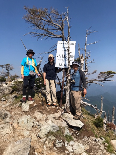 5/25 碧海信用金庫 今村支店(500)=亀山JCT(555)=針インター(640)=天川村役場(835 855)=行者還トンネル西口(935 950)-奥駆道出合(1105)-聖宝ノ宿趾(1230)-弥山小屋(1400 1411)-八経ヶ岳(1450)-弥山小屋(幕営)