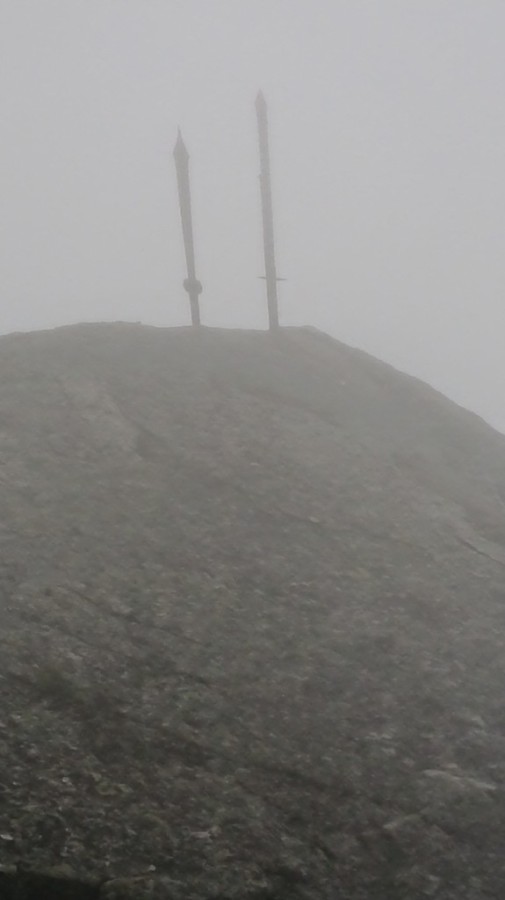 下りを心配しながら、がじがじ登ってゆき、ぼわつ~と、有名な見たかった二本の剣が