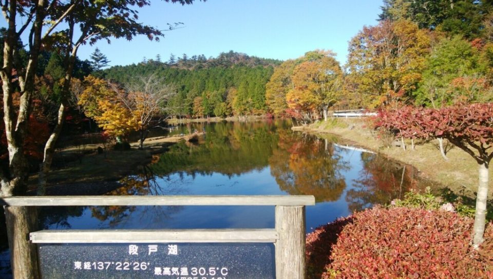 三河高原キャンプ場 7:45 発 == 段戸湖 P集合後 9:10発—五六橋 9:35—-休憩2回—-山頂 11:45~12:15(昼食)— 休憩1回—-段戸湖 P14:10 着 解散