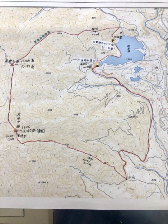 記録 5:00岡崎発==新富士IC==7:40田貫湖キャンプ場-着-登山開始8:00--休憩8:40-50(ベンチ有)–休憩9:35-40–長者ヶ岳着10:05-25発—天子ヶ岳着11:10-40(昼食)発–富士見台11:45-12:00–休憩12:30-45–休暇村富士着14:20-40–田貫湖キャンプ場着15:00==おこのみ食堂・伊藤(富士宮やきそば)==入浴==新富士IC==岡崎着20:00解散