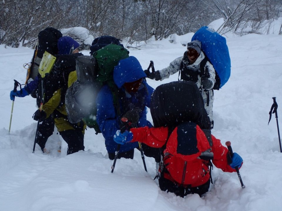 研修目的は、”雪に親しむをコンセプトに、気象学と雪氷学の観点から雪について学び、雪上での歩行技術や生活技術、危急時対策を中心に積雪期登山に必要な基礎の修得を目指す” です。