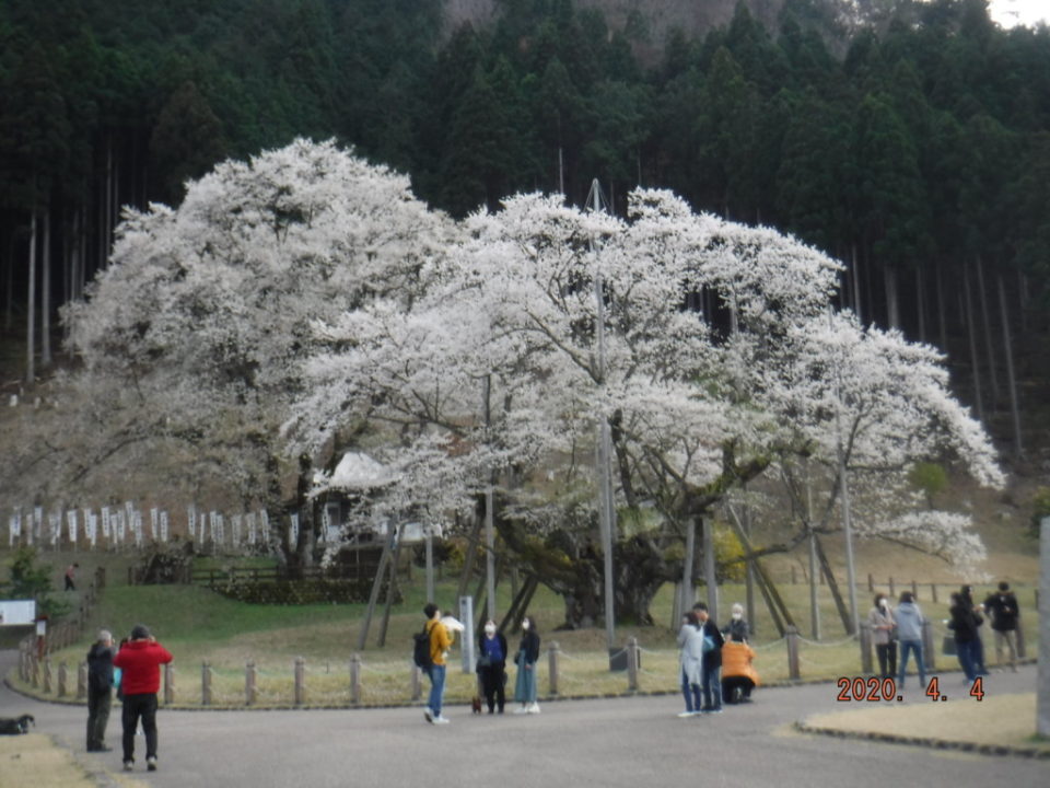 下山後のPM6:00の淡墨桜です、満開で少し花びらが散り始めていました。