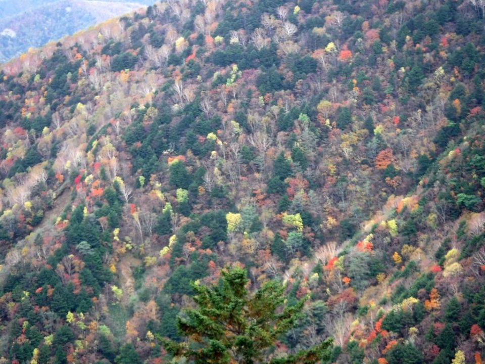- 10/18 柳川瀬公園4:30==豊田東IC==恵那SA(休憩)==園原IC==林道ゲート(6:30 6:50)–広河原登山口(7:30)–4合目(8:55)–8合目(10:35)–山頂(11:10)–避難小屋(11:20 12:30)–山頂(12:40)–広河原登山口(15:40)–林道ゲート(16:05 16:20)==ゆったりーな昼神(16:40 18:30)==園原IC==恵那SA(休憩)==豊田東IC==柳川瀬公園(21:00)