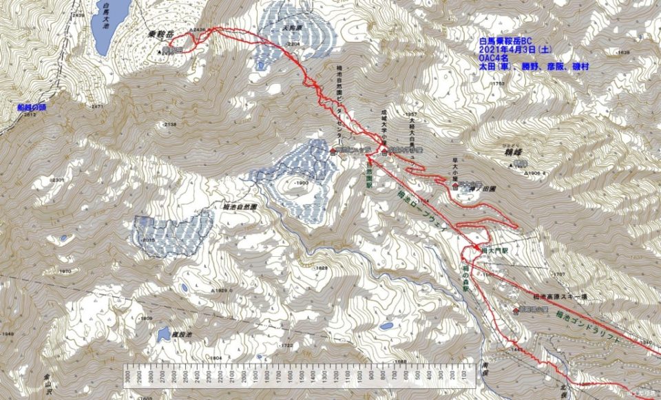 - 4/3・・・柳川瀬公園駐車場(4:00)===豊田東IC===安曇野IC===栂池高原スキー場===ロープウェイ山頂駅(10:00)