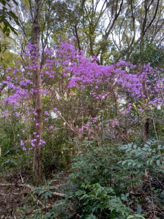 ツバキが終わりかけ、山桜が始まっていました。南の方ではミツバツツジが咲いていました。