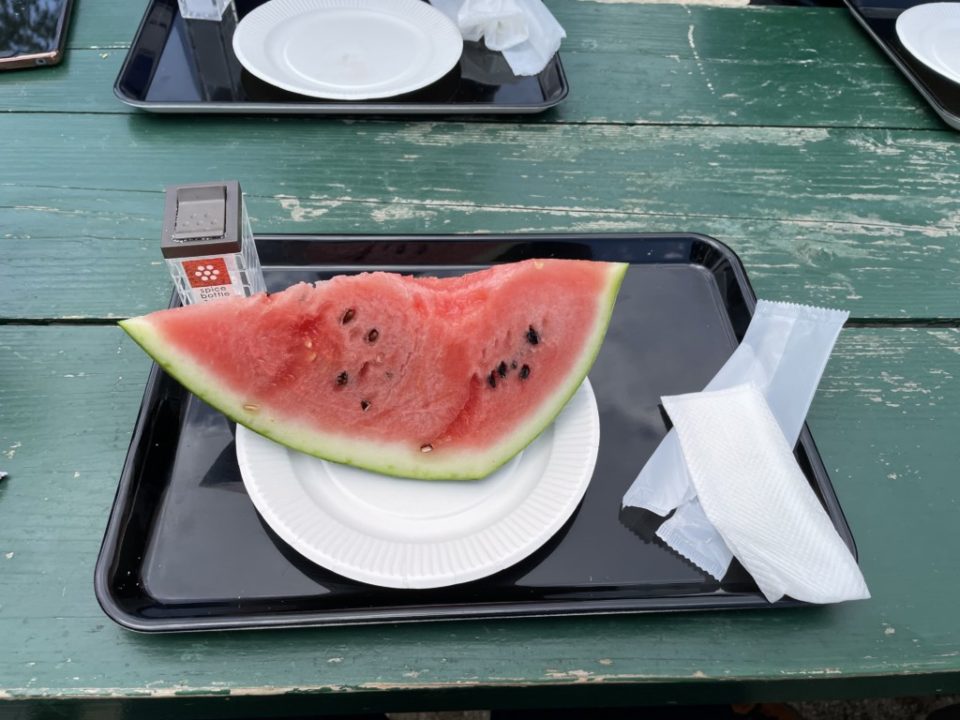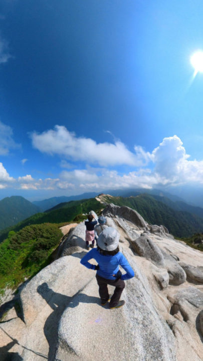 途中合戦小屋により、スイカをみんなで食べました。想像以上に大きくて驚きましたが美味しかったです。2時ごろに燕山荘に着き、テントを張り、荷物を置いて燕岳へ向かいました。山頂へ着くと360度周りの山が見渡せ、素晴らしい景色でした。この時は槍ヶ岳に続く稜線も綺麗に見え、明日はあそこを歩くんだねと話していました。