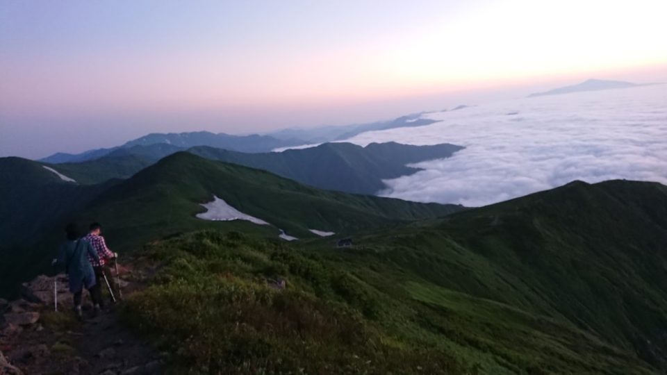 7/30 5:30 発 部屋の窓から遠くに大朝日岳が見えた。 さあ頑張ろう!!