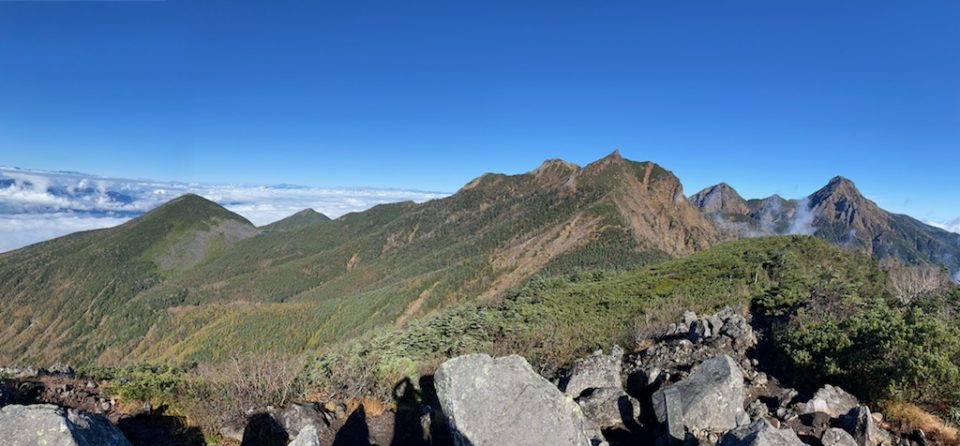 この日の夜はとにかく冷え込み3時半に起きた時はテントが凍っていました。テント撤収用に最近ゴム手を持って行っているので、撤収に末端の寒さは問題なく予定通り5時に出発です。ゆっくり歩行なので根石岳でのご来光は無理でしたが、手前で焼けた赤岳や天狗岳が望めました。暖かな陽を浴びて先を急ぎます。麦草峠以北はほぼ初めての山域でワクワクしての歩行です。茶臼山展望台は本当絶景でした。しかし雨池山から三ツ岳までが岩と根っこで段差の大きな急登。それが終わるとこれまた悪路!いや、普段の私なら好物のゴーロ地帯です。とにかく大きなゴーロで隙間が大きい。ピョンピョンと渡る感じですが、苦手な人にはかなりの時間を要すると思います。