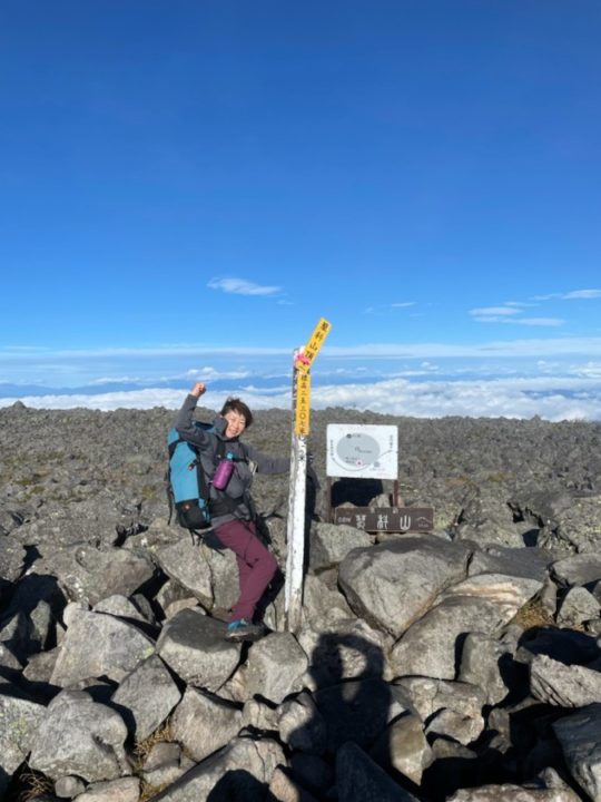 この日は双子池の雌池のほとりでテントを張りました。昼間の気温は前日とほぼ変わらなかったと思いますが、夕方からの冷え込みはなく快適でした。明け方上空は強風だけどテントは終始全く揺れず、しかも全く濡れておらず仕舞うのには最高の状態でした。そのお陰で3日目のザックは軽い!歩も軽かった気がします。登りやすい双子山を越えて、一度大河原登山口まで降りて最後の蓼科山に登り返します。少し崩れやすい石の急登が緩く降りた後に、とても心拍数とテンションが上がるゴーロな急登です。途中ガスと強風で少し雨気味でしたが、頂上直下ではおさまり、頂上では青空と歩いてきた南八ヶ岳を望めました。