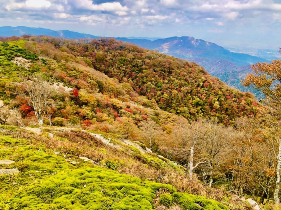 落ち葉でふかふかの登山道を進みながら、たっぷりの落ち葉に少し不安がよぎる。渓流の音を聴きながらゆったりと登っていくと、木漏れ日の下から薄紅色や黄色の葉が現れて控えめな紅葉が眩しい錦秋でした。