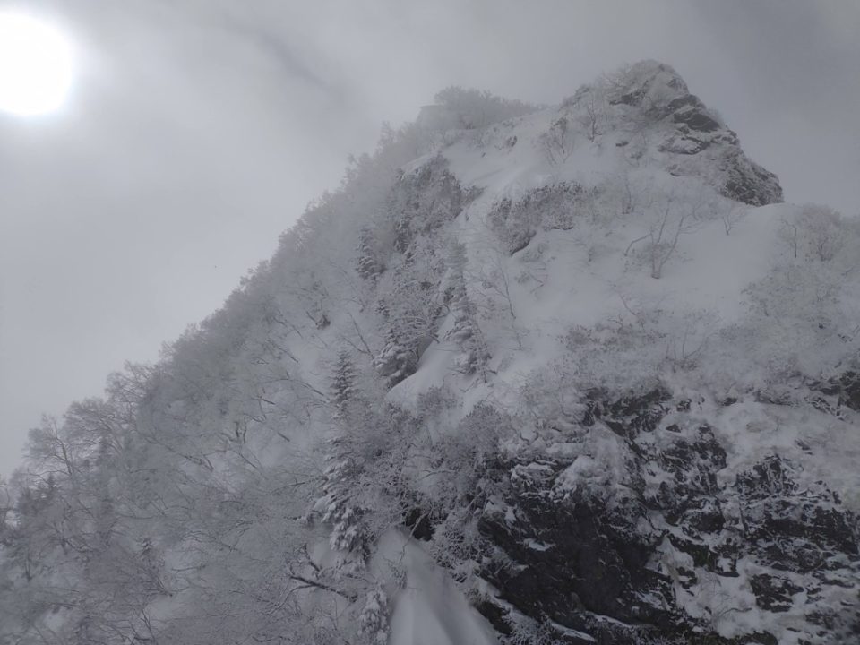 翌朝、気温マイナス20度、風があってガスがある。展望はゼロ。テンションが上がらず、少し遅めの8時頃のスタートとなる。第一高点まではあっけなく到着する。ゴープロのバッテリーはそれ以上にあっけなくダメになる。それからはあまりよく覚えていない。稜線はガスで異様な雰囲気だった。ルートファインディング、懸垂下降、ラッセル、鎖場、リッジ等、あらゆる要素が含まれたルートだった。「ここで行動不能にはなりたくないなぁ~」と思いながら、二人で力を合わせて一つずつ突破していく。こういう時には、対等な関係の相棒は心強く頼りになる。中ノ川乗越に到着したのは昼頃だった。展望良く快適な稜線なら甲斐駒ヶ岳を目指すつもりであったが、そんな気は全く起きず、検討の余地なしで下山を開始する。熊穴沢の下りは問題なし。夕方ごろには戸台に戻ってこれた。