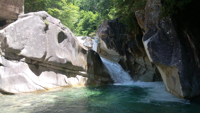 遡行開始 面白い とても美しい造形の沢と エメラルドグリーンの水に さあ行くぞと気合いを入れて………