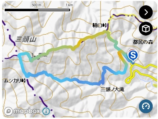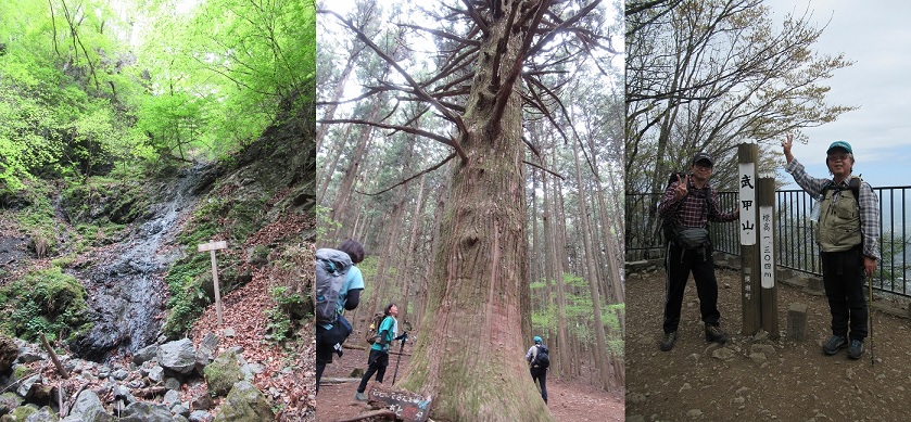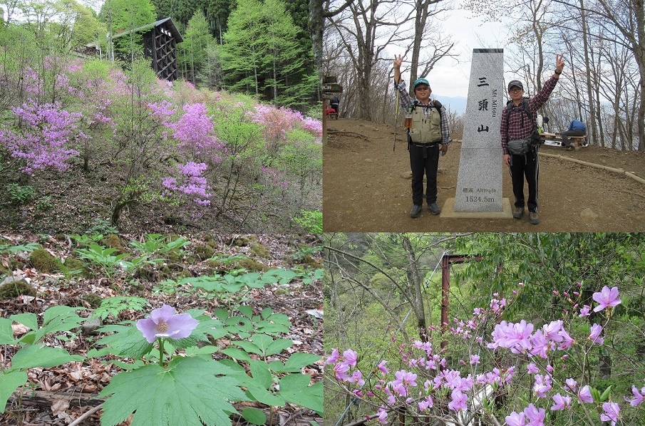 | 4 月 23 日 | TS1(5:30)==奥多摩周遊道路ゲート(8:00)==都民の森P(8:30,8:40)–鞘口峠(9:00)–三頭山[1,531m]–大滝休憩小屋(12:00,12:20)–都民の森P(12:45,13:00)==丹波山温泉「のめこいの湯」(13:30,14:00)==勝沼IC(15:30)==岡崎(19:00) |
