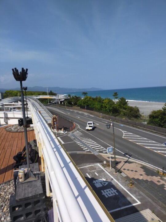 4日目のゴールは道の駅パーク七里御浜。阿田和駅がすぐ近くにあります。電車を待つ間にかつおの焼き節をつまみに乾杯。