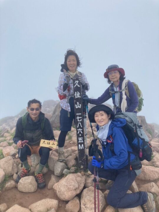 下界は青空だったのに稜線は終始こんな天候の中、九州最高峰の中岳(1791M)へ向かう。