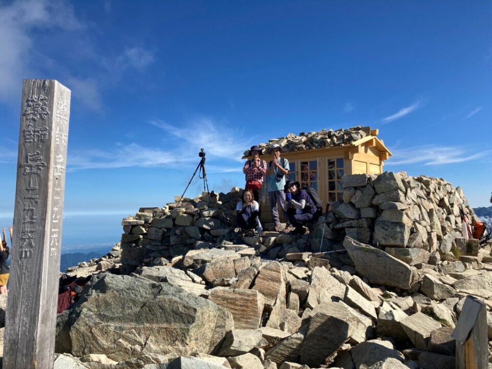 新しくなった薬師岳頂上社前で。いつか雲の平へ行けますように(祈り)。