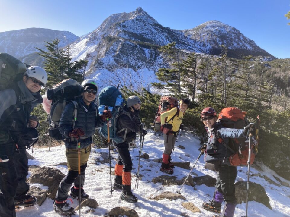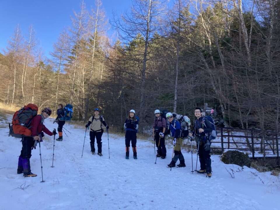N田さんがCLとなり、日帰り+1泊2日合わせて総勢21名の雪山山行となった。雪山テント泊デビューとなる私にとって、準備から分からないことだらけでスタートしたものの大先輩方々からのアドバイスをもらい、たくさんお話しする事もでき、雪は少なかったがシーズン初めてとしては良い雪上歩行訓練もでき、この1日2日で経験値を積ませてもらった。雪山シーズン始まったばかり、今季は色々積雪シーズンにチャレンジしていきたい。