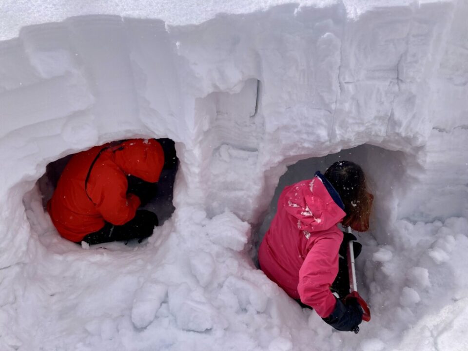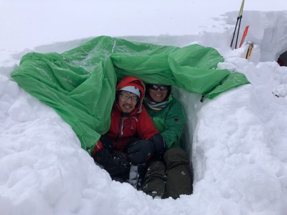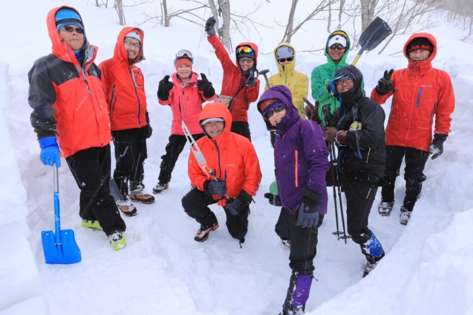 雪洞は縦と横の2種を掘り出し、テントの整地、弱層テストといい、雪山はとにかく掘って掘って掘りまくるんだなぁと。埋没体験もして、プローブで模擬捜査して2日目は雪とたくさん戯れることができました。