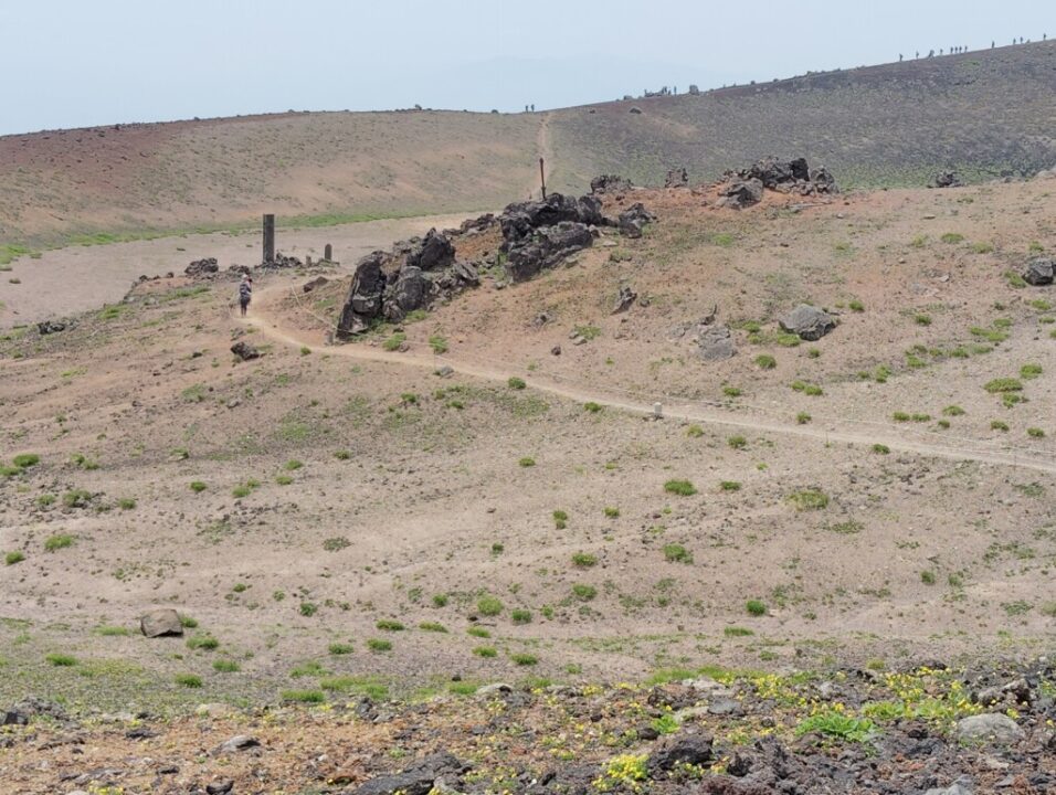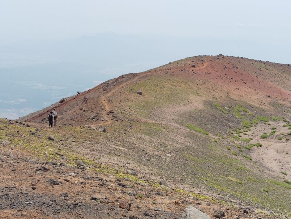 直登をざれてずり落ちながら耐えて噴火口へ。外輪を回り込むと山頂だ。