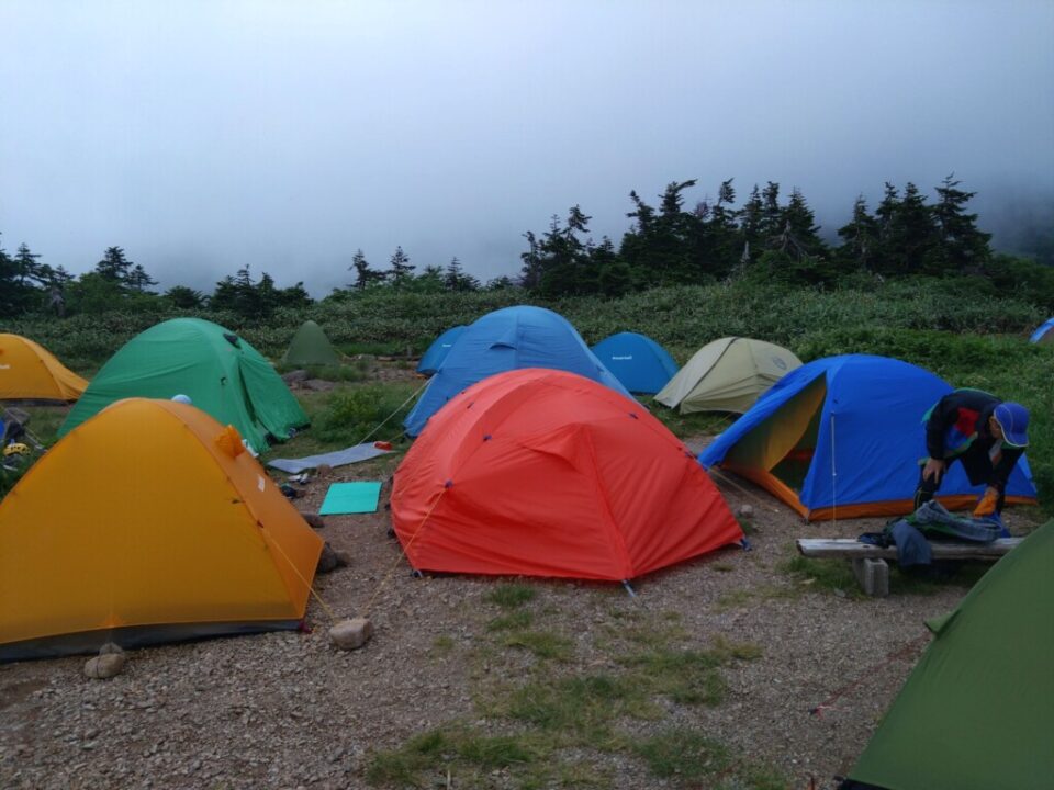 テント場へは、12:40着 後から来る班のテント場確保と、濡れたウエアーを乾かしながら 美味しいビールがゆっくり飲めました