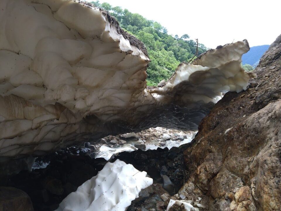 雪渓の上を歩いて、横の岩に移り降りて下から振り返るとかなり薄い部分を歩いていたみたいで危なかった