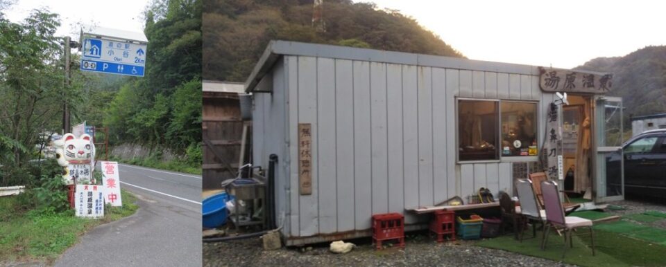 大岩壁の裏側まで進みここから頂上へ向け急坂を登る。ここから少し紅葉を見ることができたが、うっすらガスが出て来る。頂上でもガスが多めで、明日登る頸城三山や北アルプス方面は全く見えず残念。しかし、しっかり山登りができた。下山後はここも前から行きたいと思っていた湯原温泉「猫鼻の湯」へ。プレハブ的な小屋の中に温泉がある。男性側の外湯は板1枚で遮られているだけで、駐車場から見えそうなくらい開放的!車中泊の客も多く24時間温泉に入れるとのこと。とても雰囲気の良い温泉でした。今夜は道の駅「小谷」に駐車場で車中泊し、明日の新潟焼山に備える。