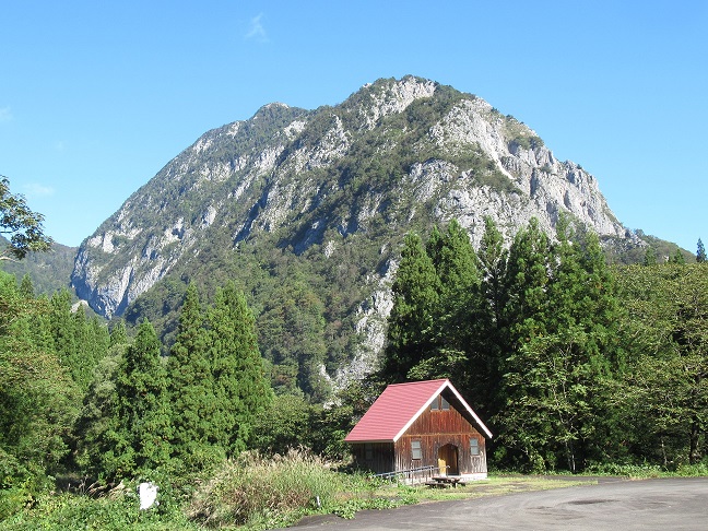 大岩壁の裏側まで進みここから頂上へ向け急坂を登る。ここから少し紅葉を見ることができたが、うっすらガスが出て来る。頂上でもガスが多めで、明日登る頸城三山や北アルプス方面は全く見えず残念。しかし、しっかり山登りができた。下山後はここも前から行きたいと思っていた湯原温泉「猫鼻の湯」へ。プレハブ的な小屋の中に温泉がある。男性側の外湯は板1枚で遮られているだけで、駐車場から見えそうなくらい開放的!車中泊の客も多く24時間温泉に入れるとのこと。とても雰囲気の良い温泉でした。今夜は道の駅「小谷」に駐車場で車中泊し、明日の新潟焼山に備える。