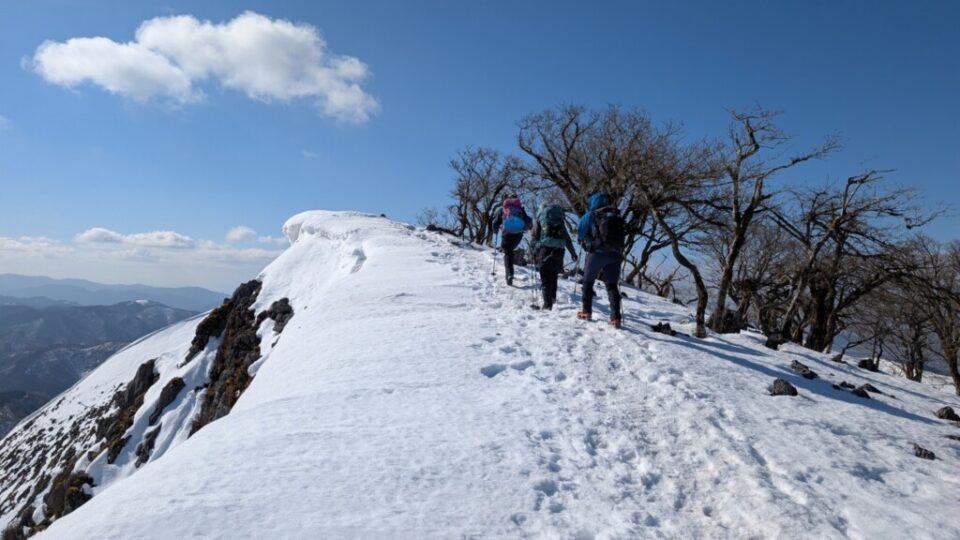 無雪期はカルストの火星っぽい感じや花の百名山としても知られる霊仙山。一度行ってみたいと思っていました。思いがけず雪の時期に行け、少し風は強かったものの晴天に恵まれてとても楽しかったです。道中は神経使うトラバースなどもほぼなく基本安心して歩けて、樹林帯抜けた上は琵琶湖や伊吹山が見えて景色もよく、広くてスノーハイクやヒップソリを楽しむのにもよい場所でした。