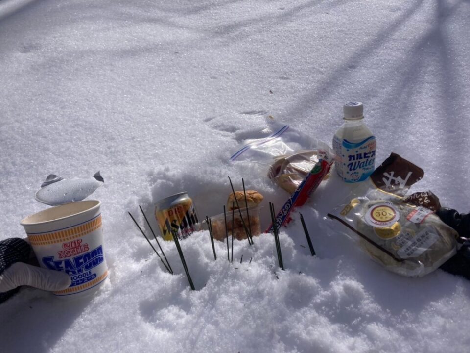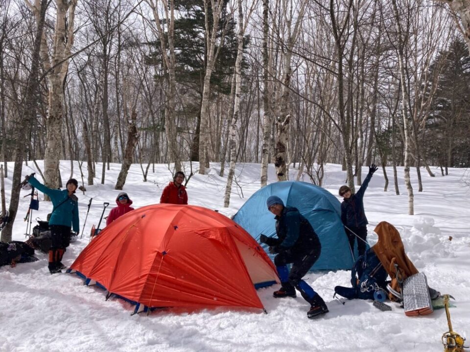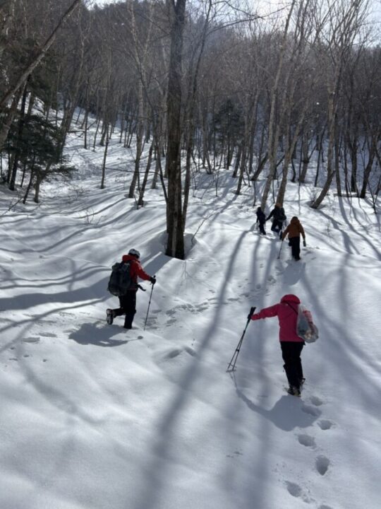 雪訓初日はふみさんの命日、晴天の下でお参り。翌日滑落現場を見ましたが滑落するような危険な場所とはあまり感じなかったのですが、滑落したら滑落停止でも止まらなさそうな急斜面でした。当時についてお話を聞き、大切な仲間を救うためにそれぞれが最善の行動をとるために行動されていたのが凄いなと感じました。そして言葉にしてお話できるまで気持ちの整理をしながら当時のことを乗り越えて前を向いている姿は逞しく見えました。登山はリスクがつきもの、登りたいではなく登れるための技術を身につけるとともに最後まで気を抜かずに下山することの大切さ、いざという時のためにファーストエイドなどの救助技術を身に付けることの必要性を感じました。自分自身も同行者も危険に巻き込まれないように気を引き締めて登山をしていきたいと思います。