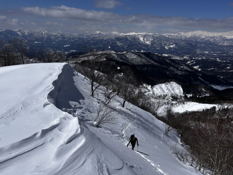 道中のフォロー、危険個所を教えて貰うとともに、下山時は安全な箇所で滑落停止の訓練もしました。課題だった足上げはうまくいったものの、上体の恰好がうまくいかず、雪山にいくたびに安全な斜面があったら訓練したいなと思いました。