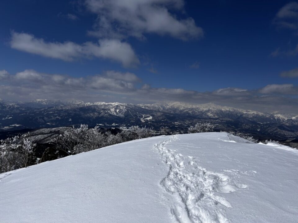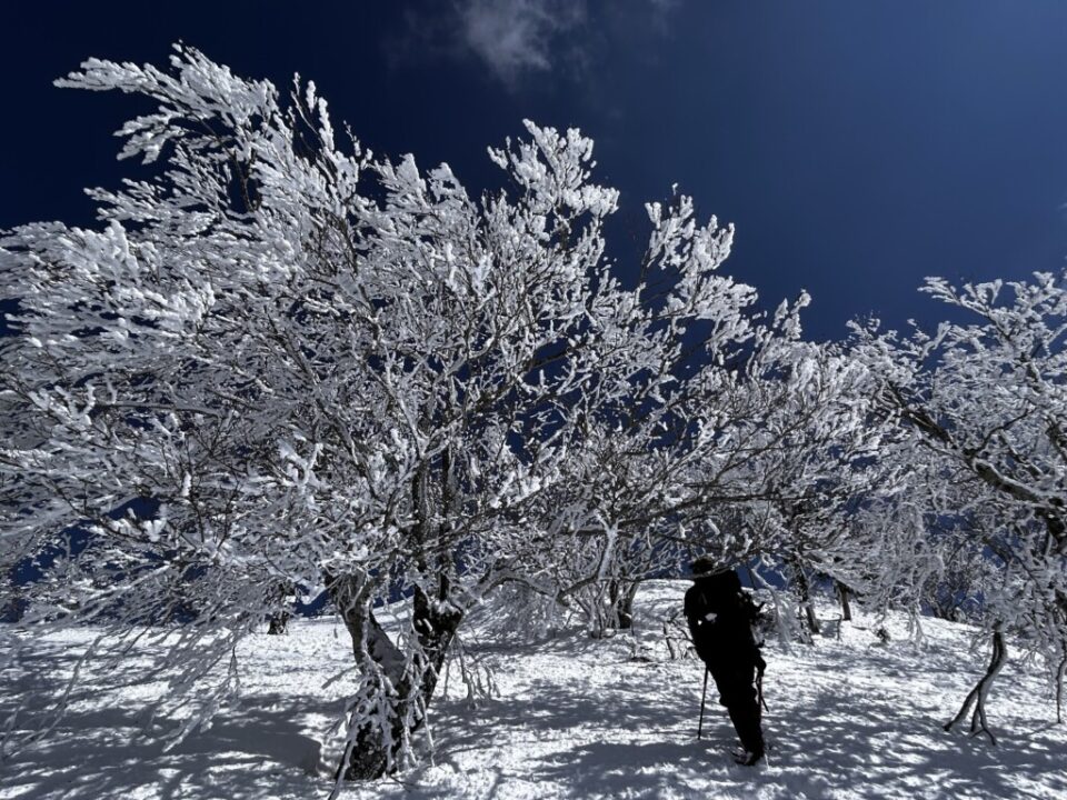 今回は駐車場もルートも間違えないよう注意し無事リベンジ成功。青空に生える樹氷、貸切山頂のパノラマ絶景を堪能してきました。最高の天気で登りは暑かったです。風もほぼなく山頂でまったり休憩もできました。