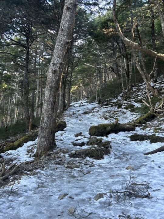 杖立峠手前のアイスバーンでチェンスパを装着せずに追い抜いて行ったパーティが尻もちをついていたのでひやりとしました。登山道の状況に応じて必要な装具をつける必要性を感じました。