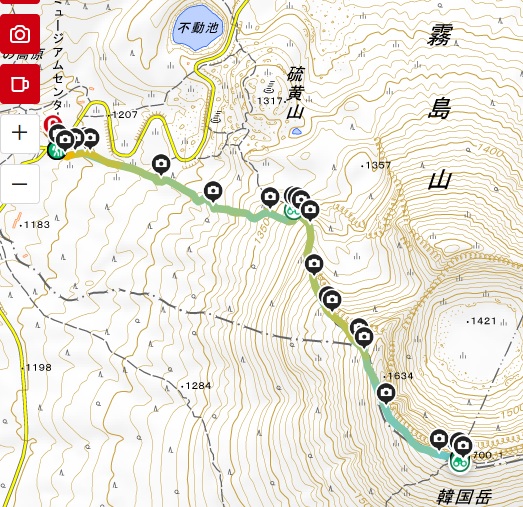 | 4月27日 | 民宿霧島登山口温泉《泊》===えびのエコミュージアムセンター(08:29) — 韓国岳登山口(08:33) — 硫黄山火口展望所(09:01) — 韓国岳(霧島山)(09:56、10:25) — 硫黄山火口展望所(10:56) — 韓国岳登山口(11:22) — えびのエコミュージアムセンター (11:24)===湯の里ユースホテル《泊》 |