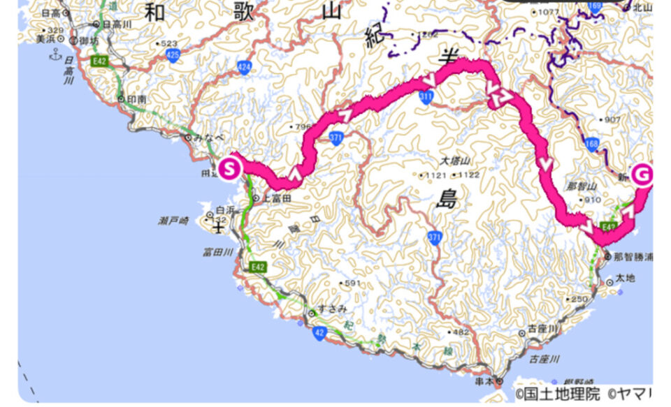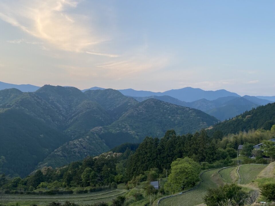 1日目 中辺路のメインルートは滝尻から熊野本宮大社のを繋ぐ道だけれど、中辺路のスタートといわれる紀伊田辺駅を出発地にしたかった。駅から滝尻までは9割が舗装路で夏日だった1日目は思うように歩けず、計画がやや遅れ気味なるも予定していた高原霧の里にたどり着けることができ安堵。日没と重なり良い景色を収めることもできた。そそくさと夕飯を済ませて就寝したが思うほど眠れなかった。