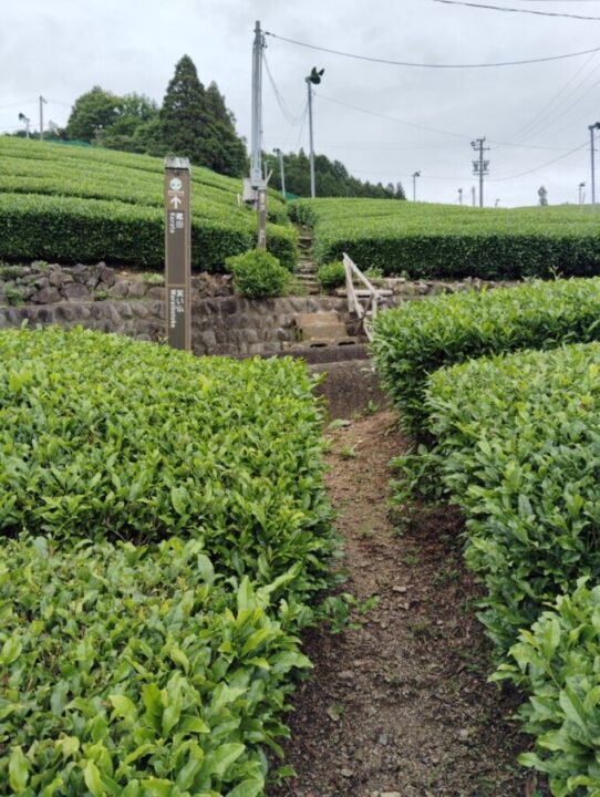 登山道入り口から茶畑の急斜面をほぼ直登して登っていきます。