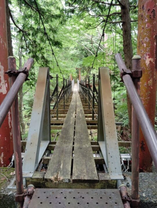 神社から車道を蔵田集落へ下る途中の展望地から富士山が見えた。蔵田バス停で藤枝方面へ向かうびく石コースと別れ、宇嶺の滝へ。70mの落差だそうで迫力がある。清笹峠の手前から県道36号線が災害復旧工事で令和8年3月まで通行止めになっている。工事はほとんど終わっていて徒歩の通過に危険個所はなかった。