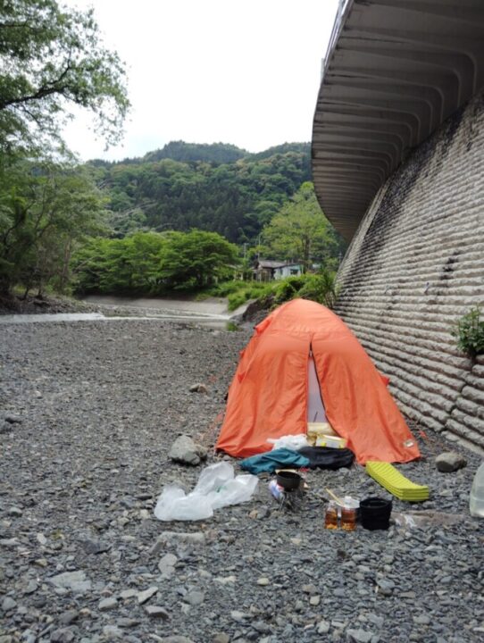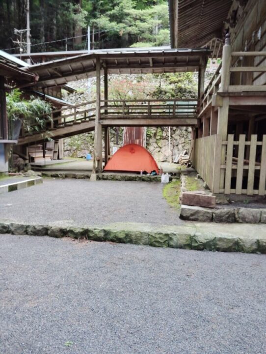 高根白山神社の邪魔にならないところにテントを張らせていただいた。