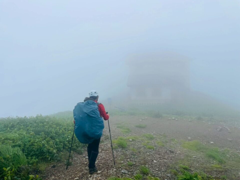 日本海側から風が吹きつけていたので、登山道が稜線に対して山形県側に入ると風裏になって一息ついて、尾根芯から新潟県側は暴風、を繰り返したような気がします。