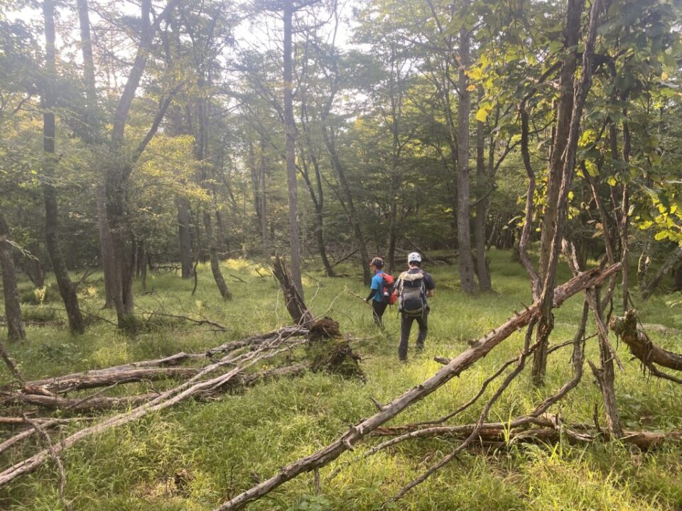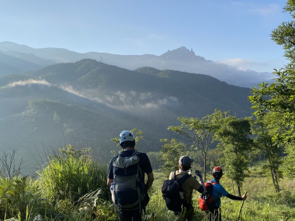 2日目も1日目と同様に昼前から天気が崩れてくることを見込みスタートと少しだけ早めて活動開始。K田(和)に加え烏帽子岩マルチの予定がなくなった1班のY澤さんも参加することとなった。N田さんも参加の予定だったが、体調不良で不参加となり車の回収をしてもらった。後、相当な雨に降られることとなったことを思うと、先に車回収されてよかった