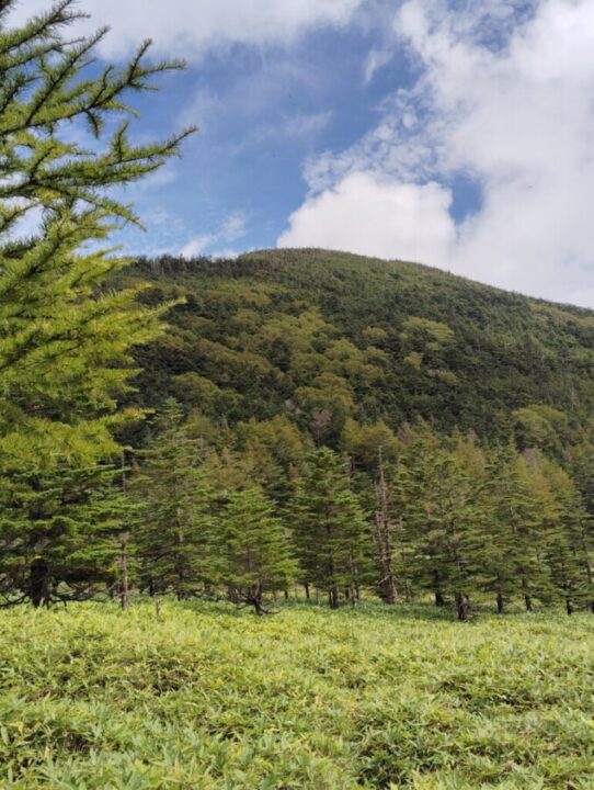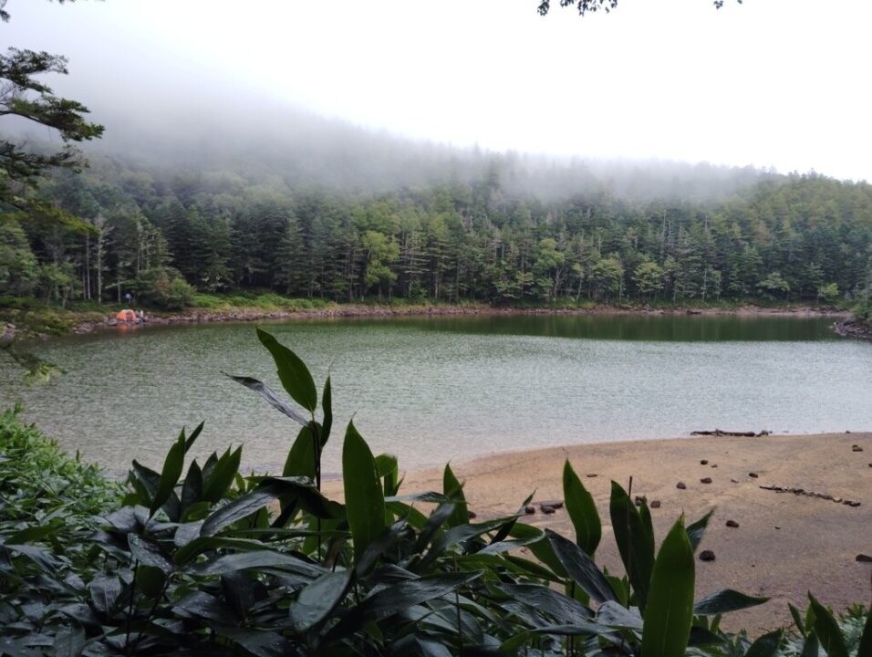大河原峠に戻って、日帰装備の中身をテント泊用のザックに移して、双子池に向かう。笹が生い茂って見通しがきかないところが多々あり、熊が怖いので意味のない独り言を放って通過する。