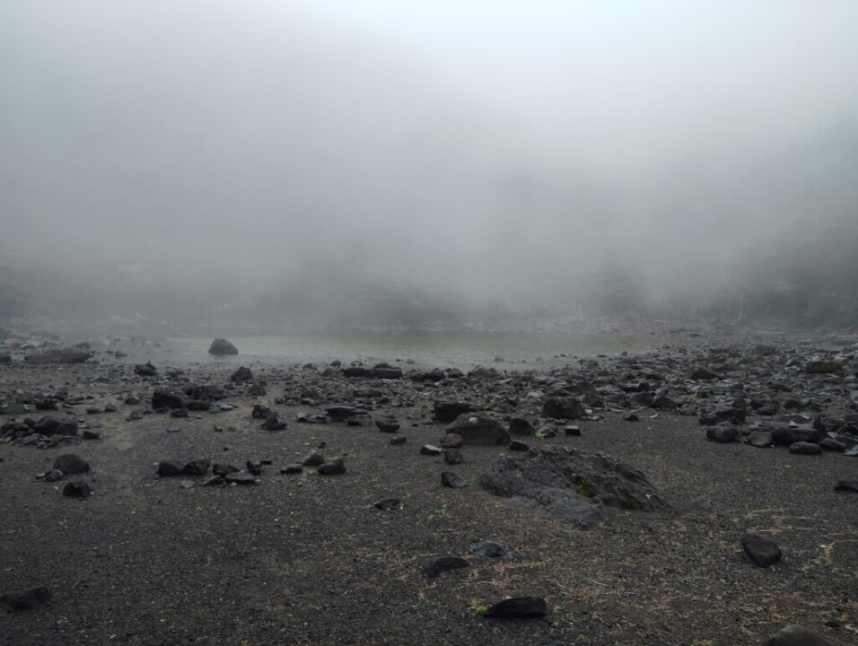 7:00に双子池テントサイトを出発。亀甲池から北横岳への急登に入る。途中の急坂は半端ない。樹林帯を抜けるとすぐ北横岳北峰に着いた。ガスガスで景色はなく、すぐ亀甲池へ戻った。