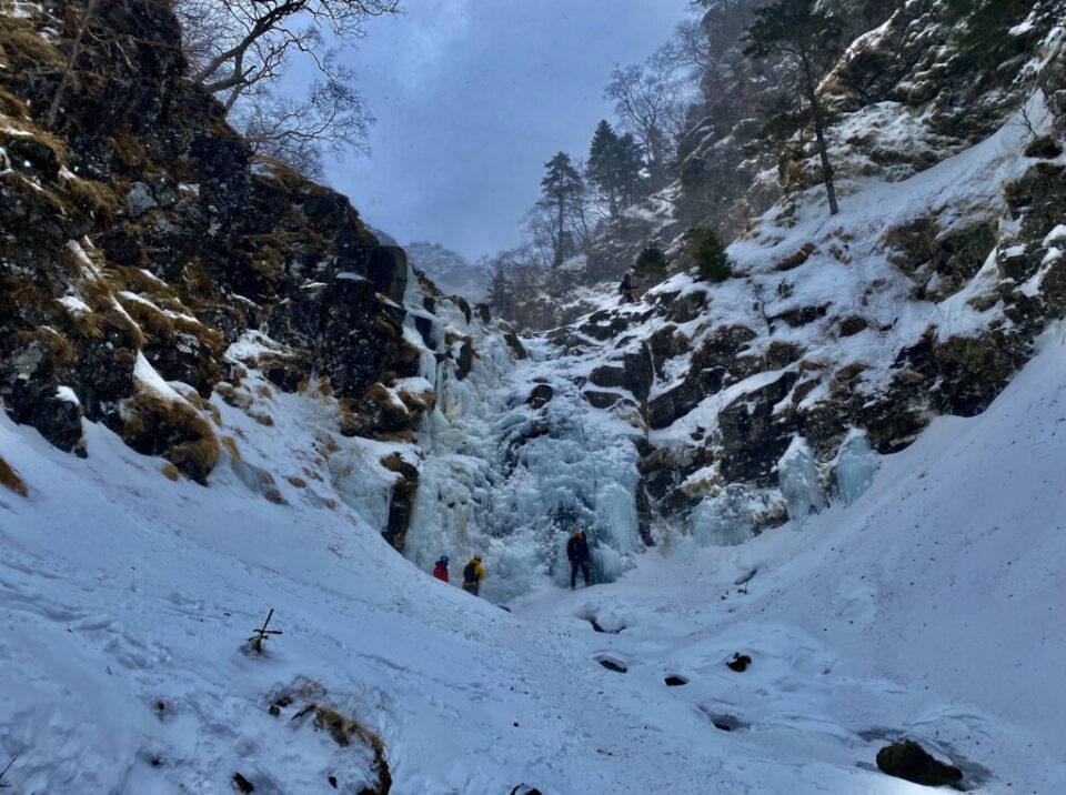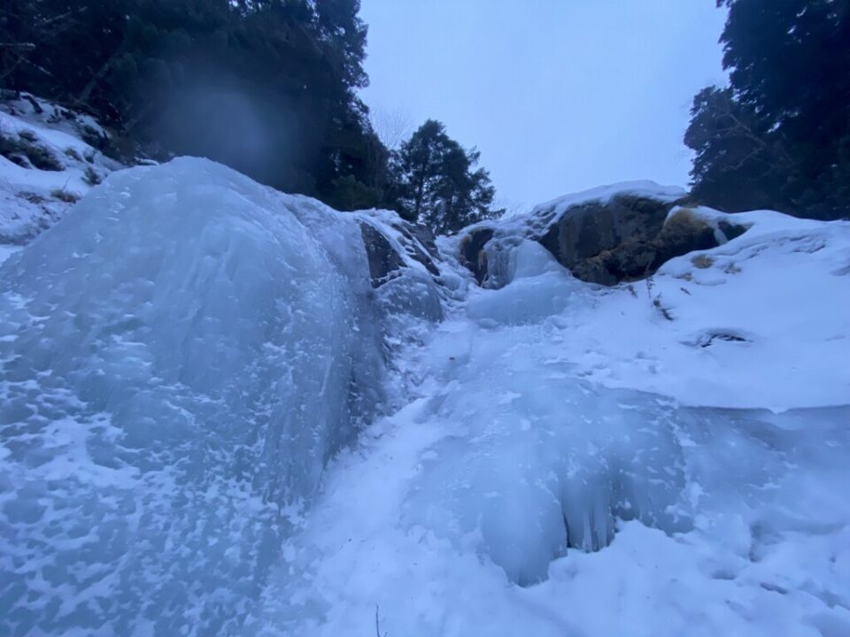 初めてのアイスクライミング体験は天候こそイマイチでしたが、寒さ対策や装備をどう工夫すべきかを考える良い機会になった。テクニック面でも、正直まだまだ練習が必要だと実感しており、今後も引き続き取り組んでいきたいと思う。短い練習時間にもかかわらず、経験豊かな先輩方3名のご指導のおかげで、私にとって非常に充実したアイスクライミング練習会となりました。またぜひよろしくお願いします。