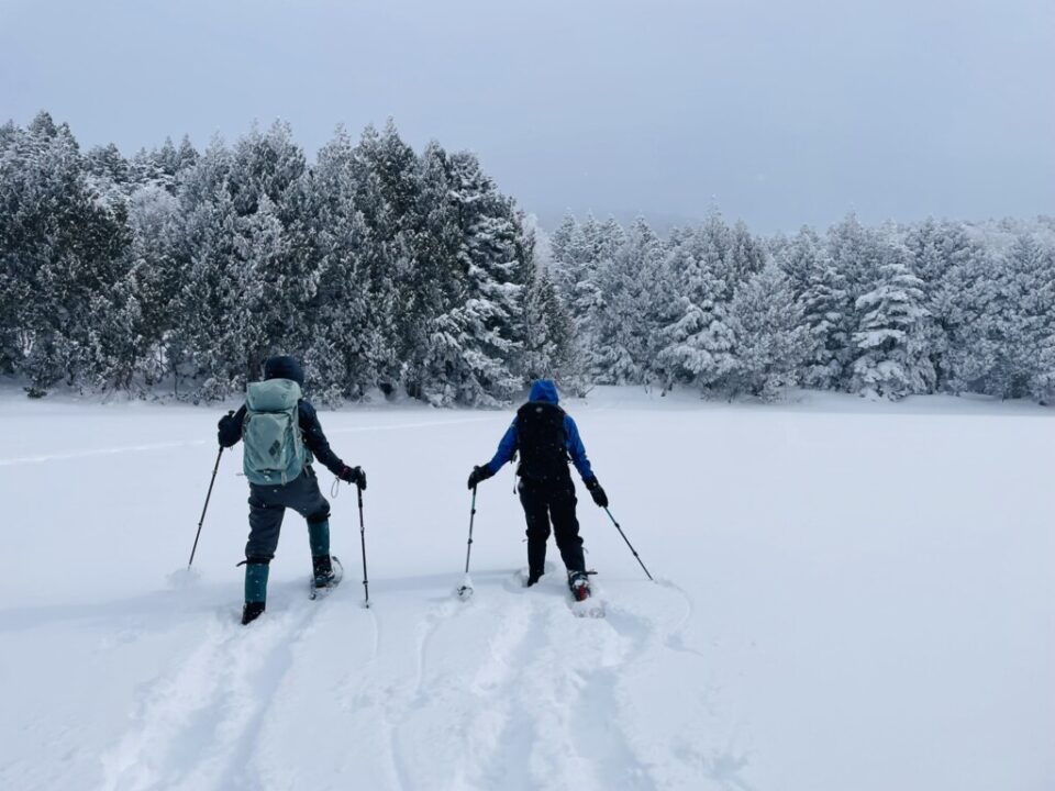 初めてのスノーシューハイクだったので、歩き始めるまではまともに歩けるのか、寒さに耐えられるのかといった不安ばかりが大きかったのですが、みなさんのおかげで素晴らしい体験をすることができました。ノートレースを歩く場面もけっこうあったので、先頭を歩くプチラッセル体験もさせていただきました。スノーシューとスキーの両方の得意不得意も知ることができました。天気予報がよくなかったので、3つもの計画を立ててくださり、歩きながらも状況判断を適切にして導いてくださったK田さんご夫妻、何も知らない私に声をかけてくれたK藤さん、H川さん、本当にありがとうございました。